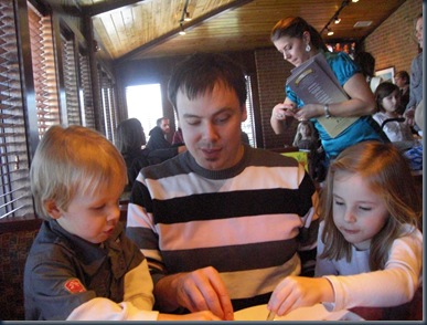 Here is our wonderful family at our favorite Sunday restaurant, Cheddars! You can't see but Nathan and the kids are pigging out out on fries with ketchup. Josie is just chillin'.