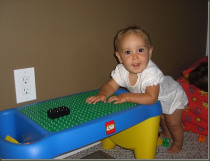Josie loves playing legos, and I thought this pic of her was adorable!